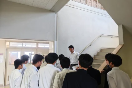 この「遠足」は,電気工事士の試験を控えた生徒に対して,校内を巡り実際に設置されている電気機器や器具を見て,その名称を確認するものです。