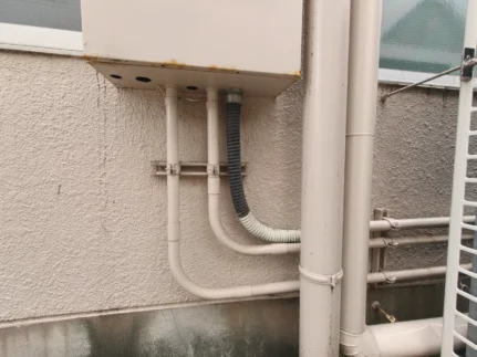 屋上へ行く階段に,露出型スイッチボックス及び線ぴがあります。