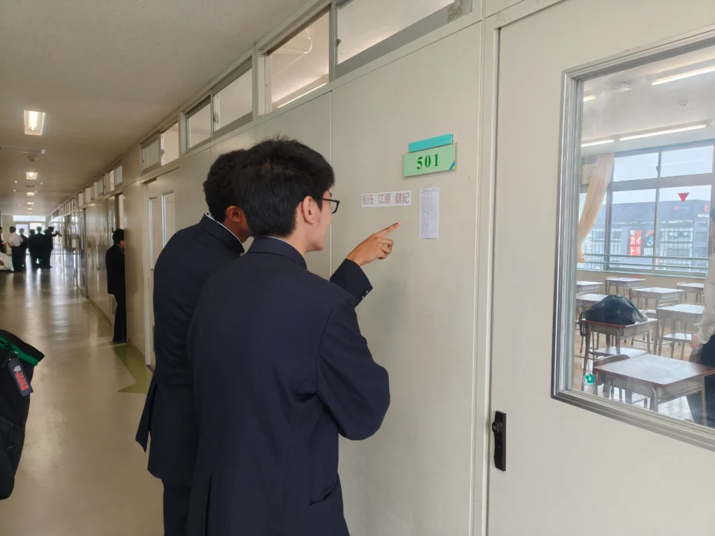 新3年生は4月3日の実力テストですでにクラスを把握していましたが、新2年生にとっては今日が初めてのクラス発表です。生徒たちは教室前に掲示された名簿から自分の名前を懸命に探し、新しい教室で担任の先生とのホームルームに臨みました。