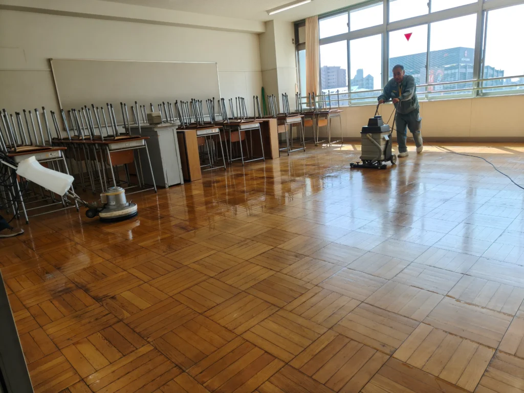 春休み 学校がきれいなっていますBy It委員、校長、副校長 / 2026年3月27日 桜の花も満開となりました。春休みですね。 学校は皆さんが休みの間,教室や廊下をきれいにしています。 各教室や廊下を洗浄して,ワックスを塗布します。 4月からはピカピカな教室で,授業が受けれるようになります。 業者の皆様,清掃ありがとうございます。