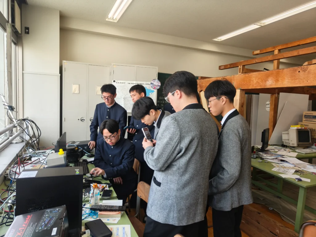 その後,学校内を巡り案内をしました。屋上や実習室,体育館,免震室などを案内していました。