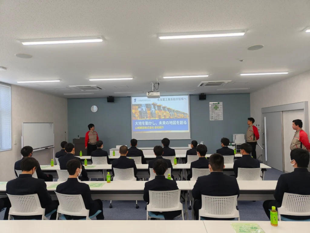 3月9日(月)2年生土木科を対象に,静岡県磐田市にある山﨑建設教育センターの見学を行いました。山崎建設は,大地を切り拓くプロ集団で,機械土工工事のトップランナーと言われている会社です。