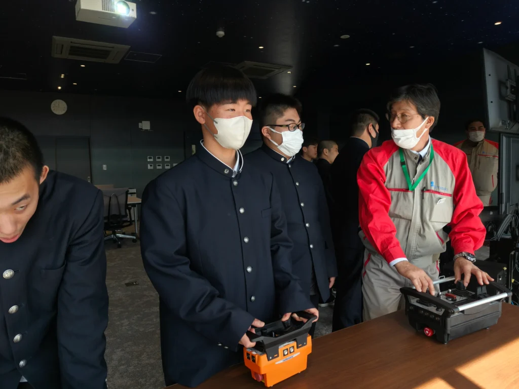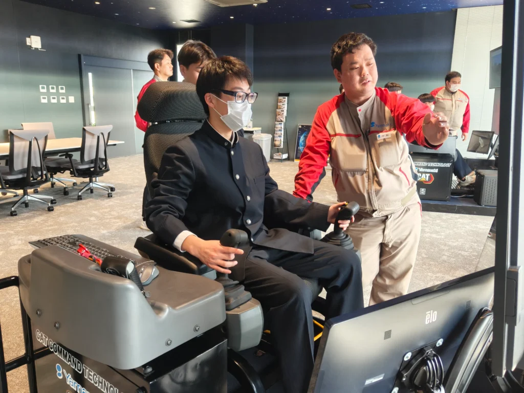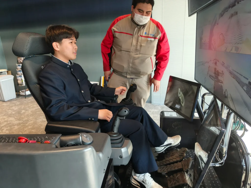 実機の運転には資格が必要ですが,敷地内の遠隔操作重機は現在のところ資格がなくても動かせるとのことです。