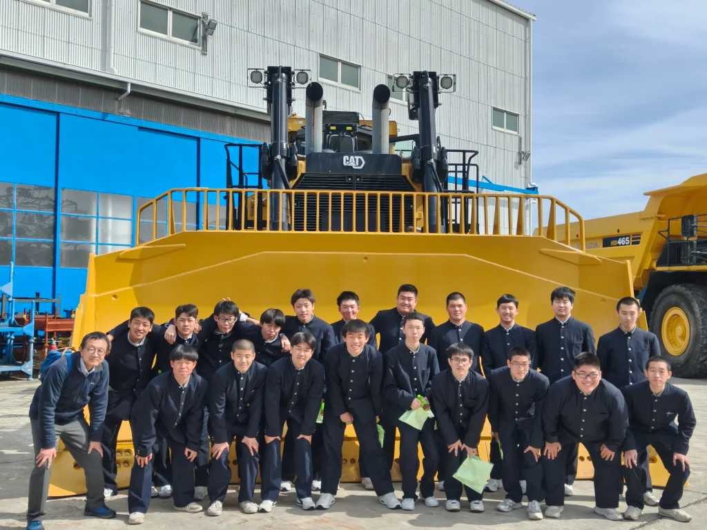 最後に,大型ブルドーザーの前で,記念撮影をしました。