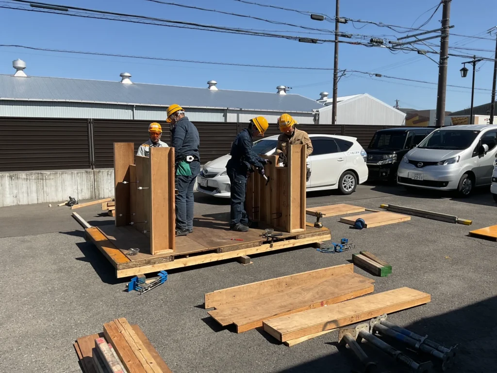 当日は、実際の現場において型枠の組立作業の一部を体験させていただき、普段の授業では得ることのできない実践的な知識や技能に触れる貴重な機会となりました。また、現場見学では、実際に型枠工事の様子を見学し、建物が完成していく過程や安全管理の重要性について学ぶことができ、建設業への理解を一層深めることができました。