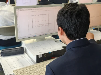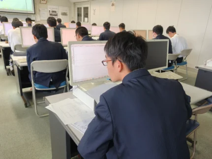 この試験は建築用図面を「CAD」を使って描く技量を測るもので,2年生の2学期よりこの試験のために対策をしてきました。