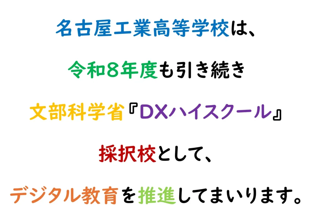 本校は,令和8年度も引き続き文部科学省『DXハイスクール』重点類型プロフェッショナル型採択校として,デジタル教育を推進し,最先端のICT教育に取り組んでいきます。